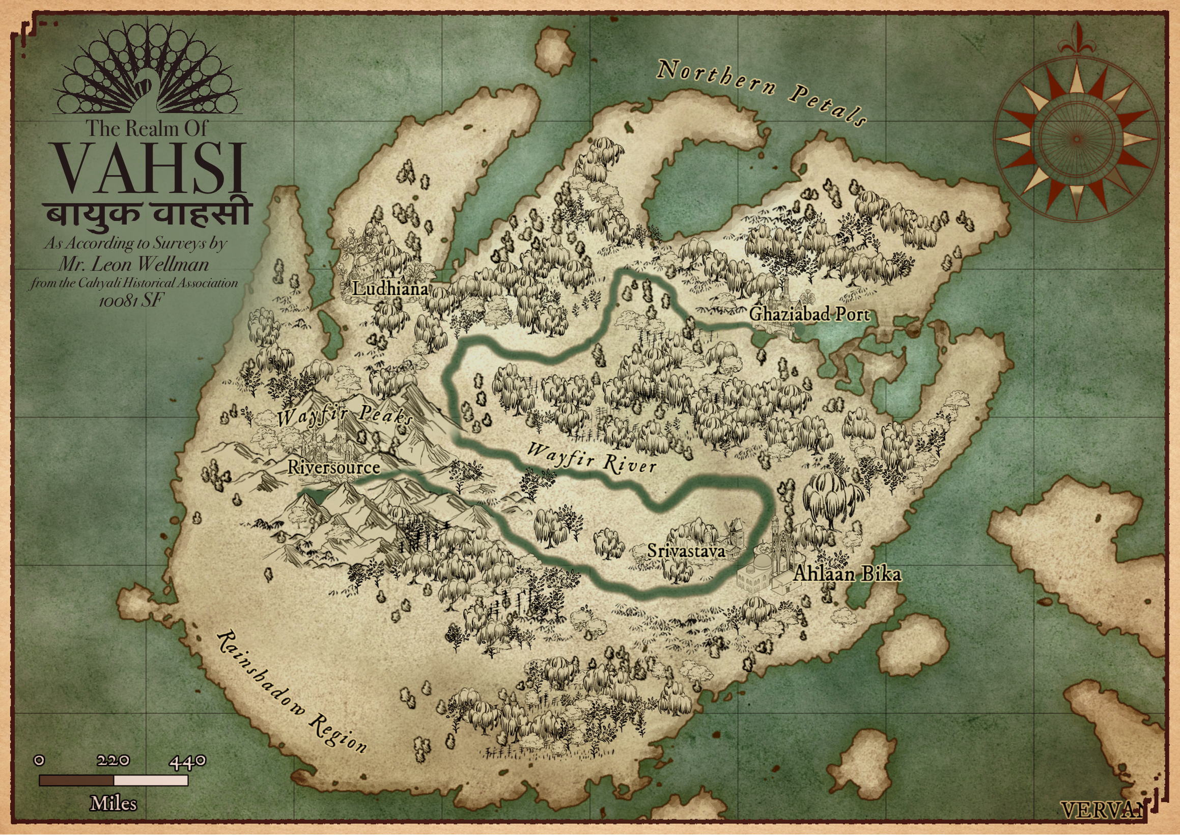 Along the far northern coasts of Vahsi are a few curved peninsulas, vaguely resembling the shape of petals on a map. This region is mostly known for its fishing, and has been the origin point of more than one ill-fated expedition out into the ocean beyond the continent. Many religious havens have taken a place in the Northern Petals.